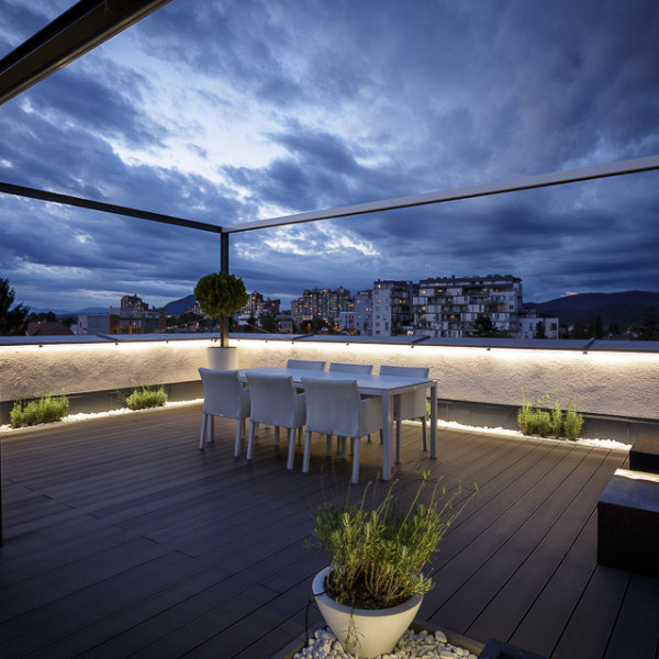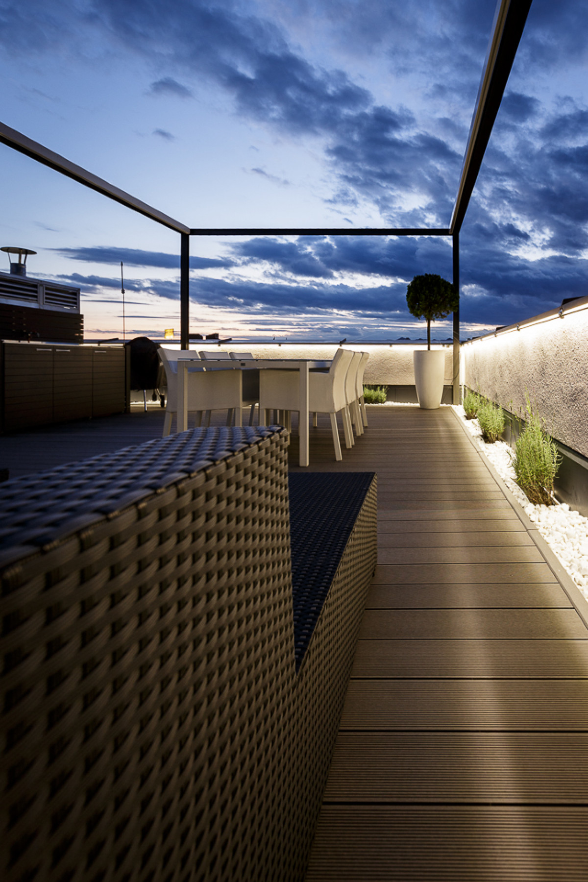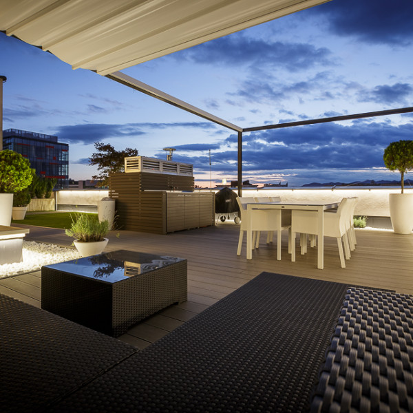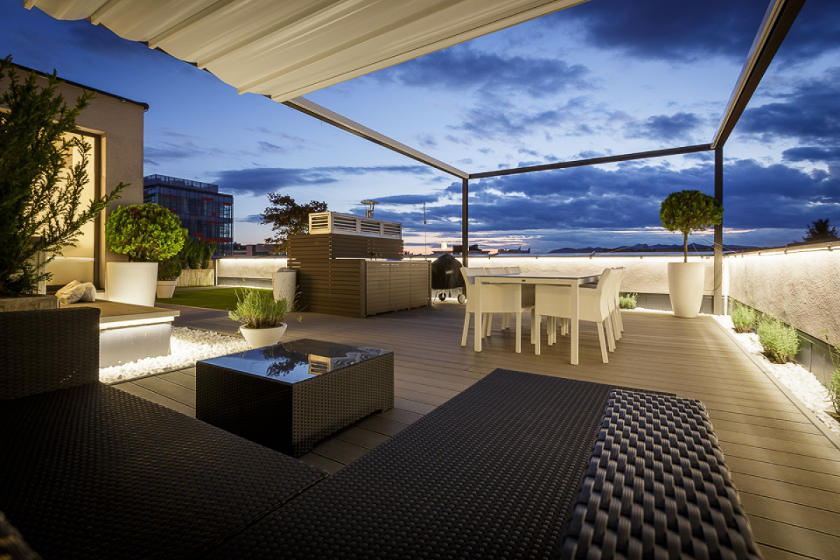 …in prav to pesem si lahko v mislih zapojemo ob pogledu na to estetsko dovršeno teraso v Ljubljani, ki s harmonijo kombiniranja pohištvenih kosov dovršenih oblik ustvari popolno atmosfero celotnega ambienta. Enostavno čudovita je!